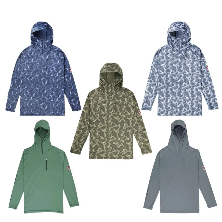 ฮู้ดและเสื้อแขนยาวสำหรับตกปลาช่วยป้องกันลมและอุณหภูมิเย็น ช่วยให้นักตกปลารู้สึกอบอุ่นและสบายในช่วงที่สภาพอากาศเย็นกว่าหรือเมื่อตกปลาในพื้นที่โล่ง